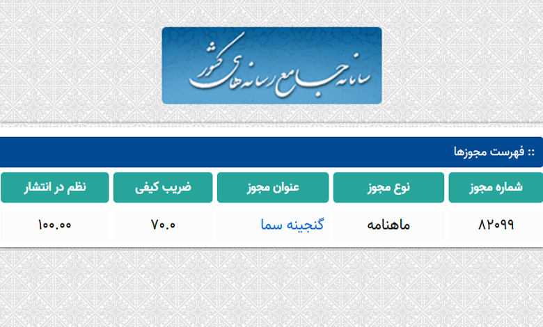 According to the news site “Sedaye Sama,” the monthly magazine Ganjineh Sama has achieved a quality factor of 70 in the latest evaluations conducted recently. This accomplishment is the result of months of professional work by the editorial team, combined with the engagement of the magazine’s elite readership